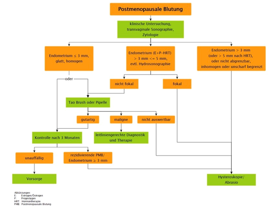 Algorithmus zum Vorgehen bei Blutungen bei peri- bzw. postmenopausalen Frauen