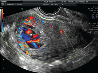 Bild 1: Sonographisch hypervaskularisierter Befund in Uterus (3)