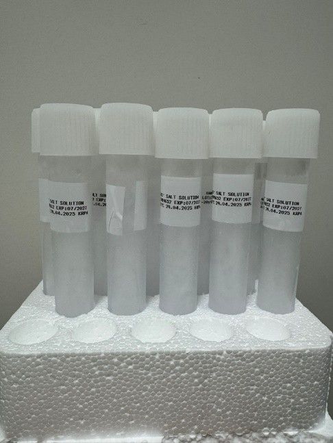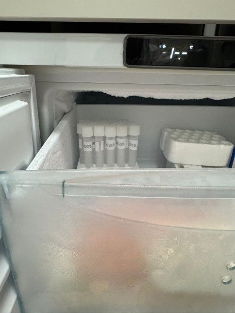 - Steriles Rundbodenröhrchen mit Hank’s Lösung. Lagerung im Gebärsaal im Gefrierfach des Kühlschrankes in der Apotheke