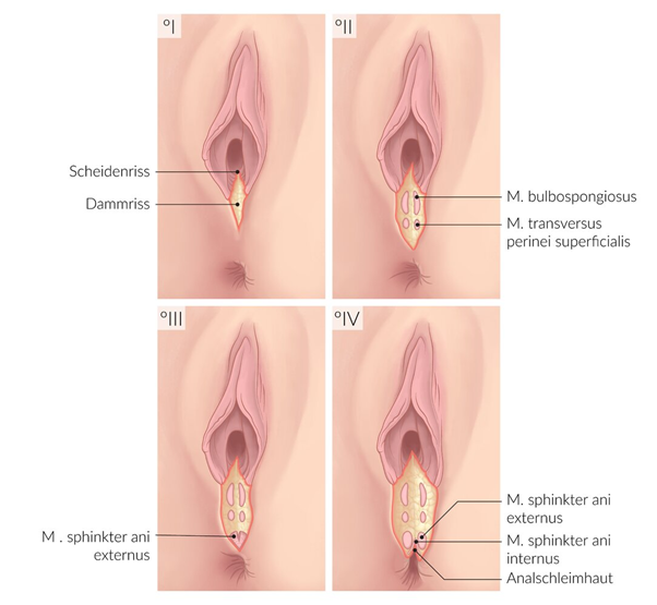 ⇒ Patientinnen sollen über Verletzungsausmass, Nachsorge und mögliche Spätfolgen wie verzögert auftretende Inkontinenz aufgeklärt werden.