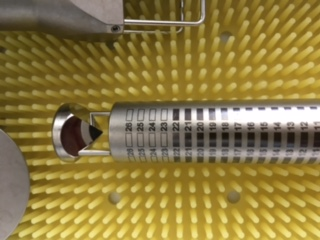 Sorgfältiges Eingehen mit der 360° Vaginal-Sonde in die Vagina bis an die Cervix oder Fornix vaginae ohne Gel oder sonstiger Befeuchtung. Markierung des Vaginalringes auf 12h in der SSL ausrichten und die Vaginalsonde in den Balkenzwischenraum positionieren (Beginn bei der Ziffer 1)